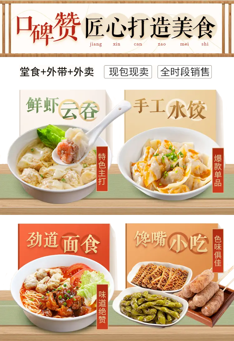 傳承精湛手工工藝,嚴格精選優(yōu)質(zhì)食材,新鮮現(xiàn)包,老少皆宜。